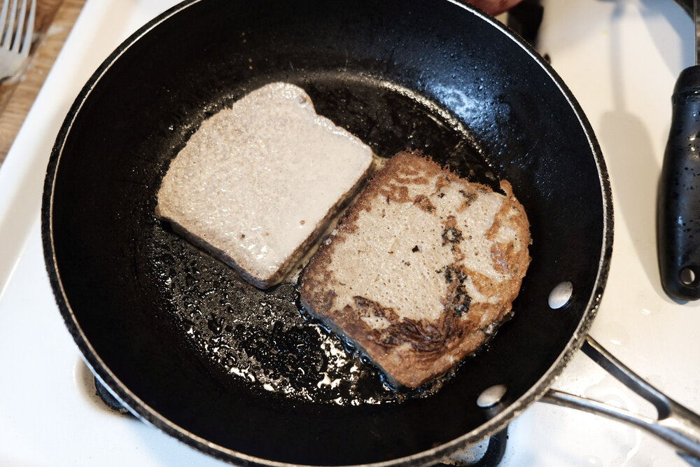 Heat 1 tbsp of coconut oil in a frying pan on medium heat. Cook soaked bread slices until golden brown on both sides. Add a little bit more coconut oil if need be. The oil will help the cooking and goldening of the toast for French toast perfection.
